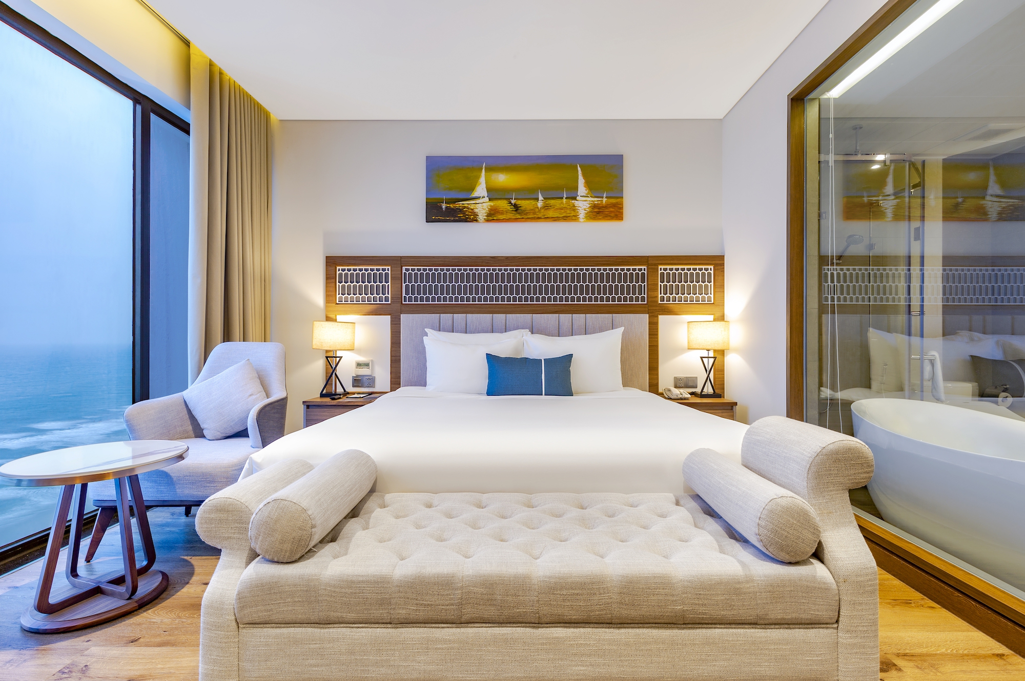 The ocean view seems to be fully embraced in your eyes when viewed from the Grand Ocean Queen, each room has a maximum area of 35 square meters and is decorated in a classic European style with a modern trend; making the Grand Ocean Queen an ideal choice for you.