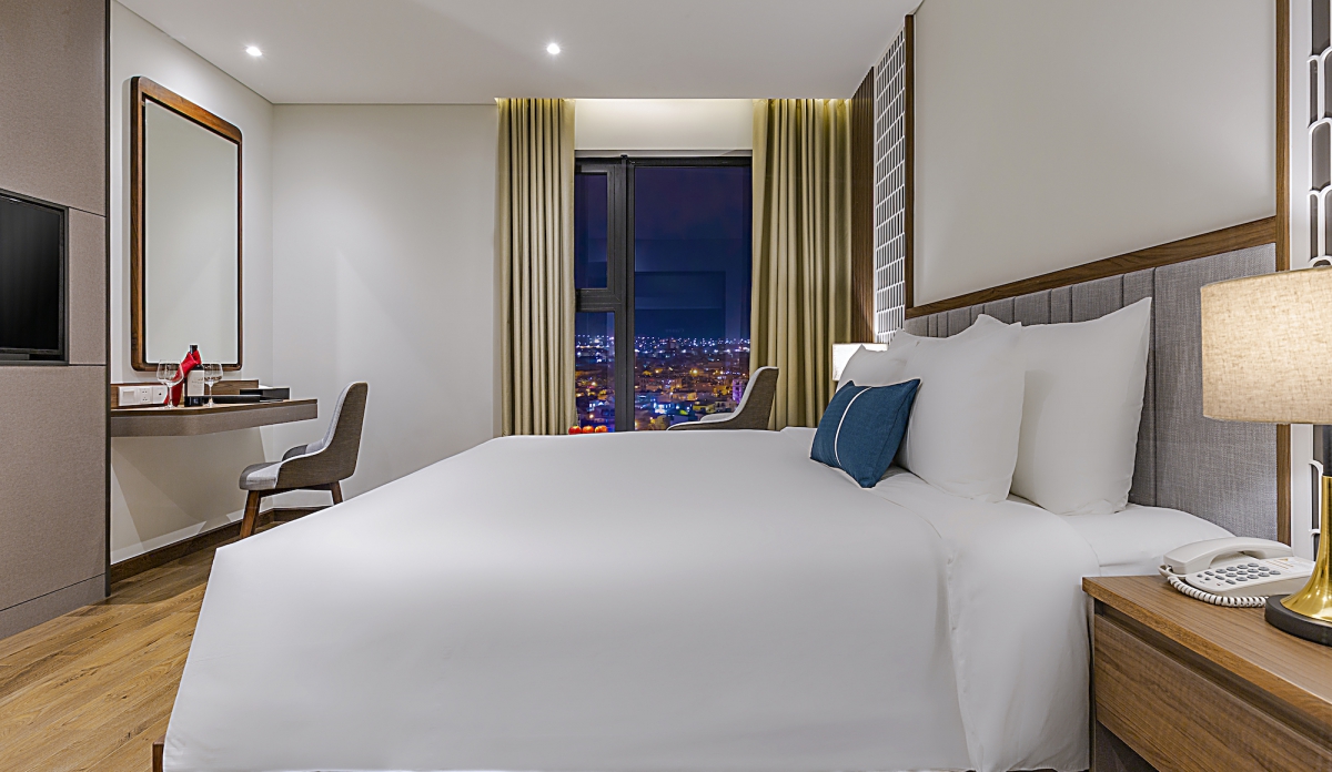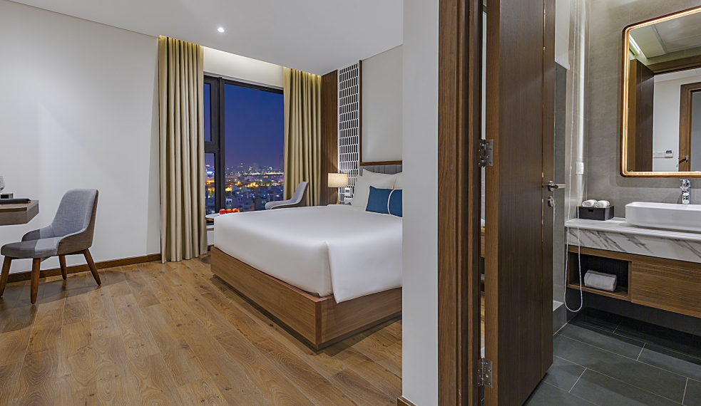 Tọa lạc từ tầng 5 đến tầng 26, với khung cảnh thành phố Đà Nẵng năng động, nhộn nhịp. Deluxe City mang đậm chất cổ điển nhưng không kém phần hiện đại - là nơi hoàn hảo để đi công tác hoặc du lịch. Được trang bị bàn làm việc và kết nối Internet miễn phí cùng nhiều tiện ích khác. Deluxe City hứa hẹn sẽ không làm bạn thất vọng.
