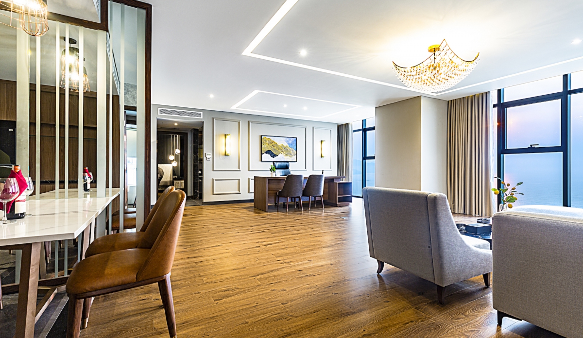 Khung cảnh của đại dương như ôm trọn tầm mắt từ hướng nhìn của Grand Ocean Queen ,mỗi phòng có diện tích tối đa 35 mét vuông, sở hữu thiết kế cổ điển Châu Âu những vẫn mang hơi hướng hiện đại, Grand Ocean Queen là sự lựa chọn lý tưởng cho bạn.