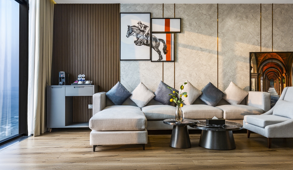 Nằm ở tầng 22 của khách sạn cùng hướng nhìn trực diện biển. Marco Polo Suite mang đầy cảm hứng của sự kết hợp giữa phong cách cổ điển và kiến trúc đương đại. Thật hoàn hảo để cùng gia đình và bạn bè thưởng thức một ly cocktail hấp dẫn và hòa mình vào tiếng sóng vỗ rì rào đầy thơ mộng của đại dương bao la.