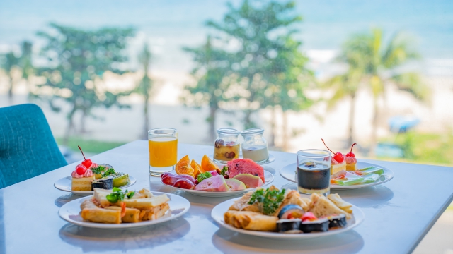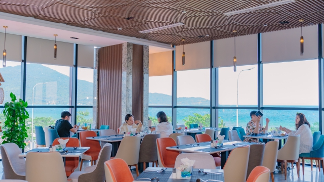 Nếu bạn tìm kiếm một buổi trà chiều dịu dàng và thư thái, Veranda tầng 3 chính là nơi lý tưởng. Nhâm nhi tách trà thơm, thưởng thức bánh ngọt trong không gian sang trọng hướng tầm nhìn ra bãi biển Mỹ Khê, bạn sẽ thấy lòng mình thật nhẹ nhõm.